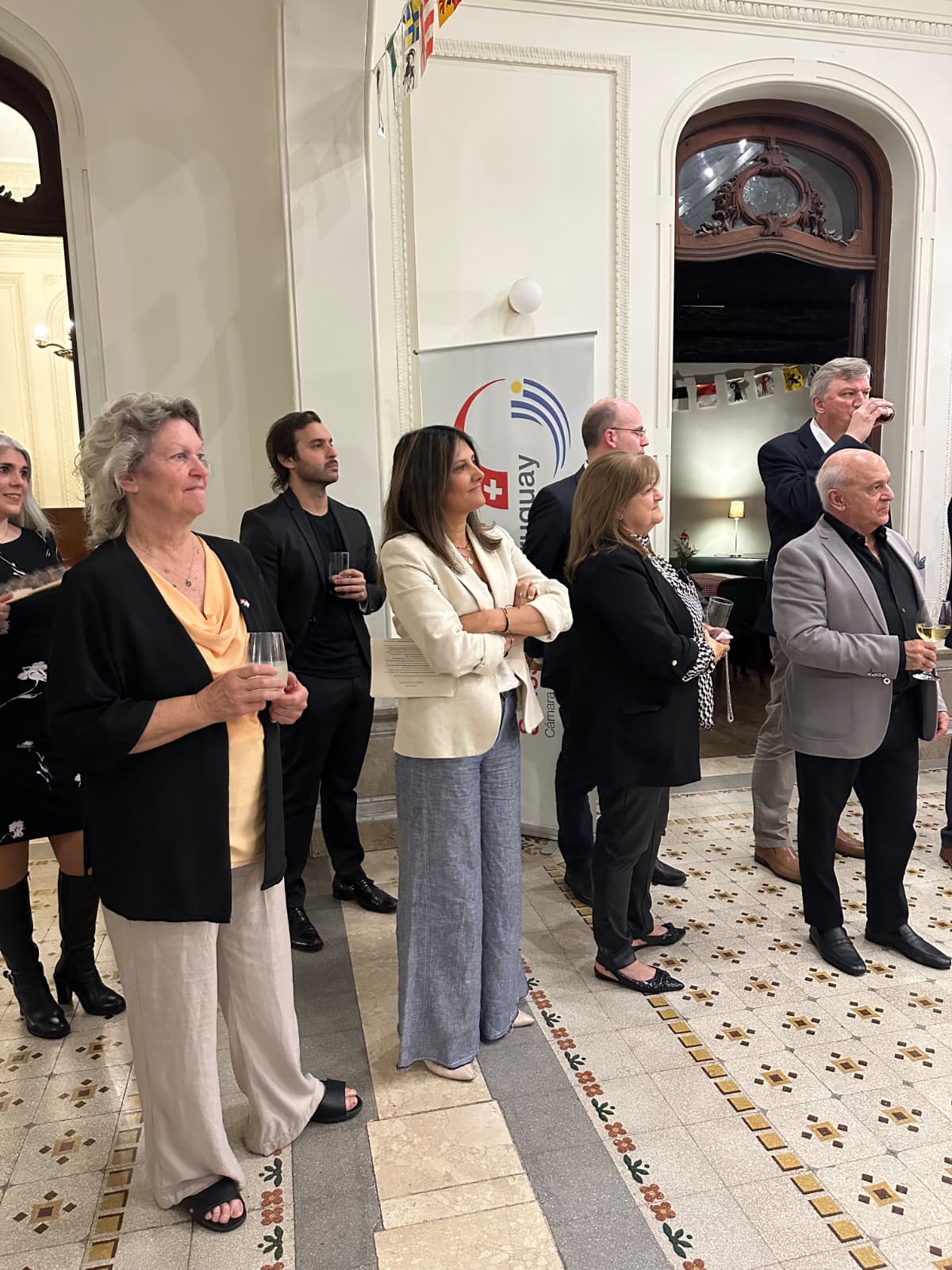 Suiza en Uruguay, Sr. Álvaro Borghi, y representantes del sector empresarial y diplomático. Durante